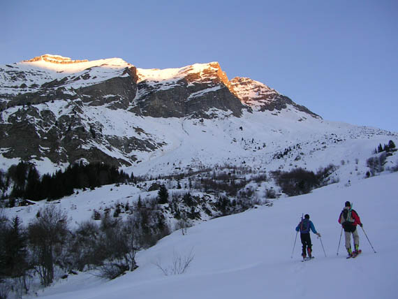 De la Giettaz (parking du téléeski au bord de la route du Plan) : remonter les pentes sud en direction du couloir situé entre les Parrossaz et la Pointe des Verres. L'entrée dans le couloir (1950m environ) se fait par un petit ressaut en rive droite de celui. Le couloir est assez encaissé jusqu'à 2250m où il tourne un peu à droite et s'ouvre. Ensuite on peut soit continuer à remonter le couloir pour sortir à proximité du point 2489, soit tirer en rive gauche pour remonter des pentes.