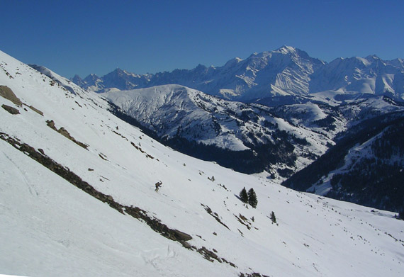 Une personne a remonté le couloir ½ h avant nous puis a traversé les arêtes vers le col sud de la Grande Balme.