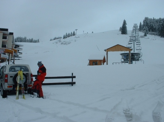 Impressionnant de trouver autant de neige ... un 9 mai. Visibilité pas terrible (jour blanc) qui m'a permis de vérifier que l'homme ne sait pas voler , même avec des skis. Surpris par une petite barre > 2.5 m , à pleine vitesse (y fallait envoyer pour que ca descende) ... et hop , 3m plus bas dans un roulé-boulé sans avoir bien compris le pourquoi du comment ! sauf qu'il faut se relever dans 1 m de poudre ...