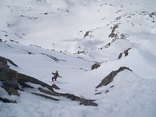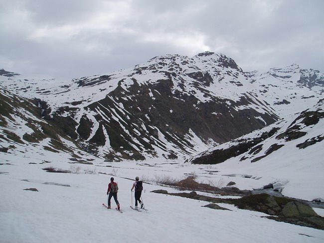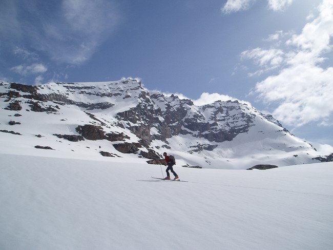 Départ sous la pluie de Grenoble ce matin, bof, bof... En Maurienne par contre il n'a pas plu et si quelques nuages et quelques gouttes nous taquinent au départ finalement ce ne sera pas plus mal car ça a ralenti le dégel très rapide au soleil. Rencontre avec la gardienne du refuge du Carro qui nous fera un brin de causette au départ. L'accueil au refuge doit sûrement être très sympa. Très bon remplissage de la face ouest cette année et très belle ambiance dommage que ce soit si court. C'est pas un scoop, l'enneigement est très bon par ici et plein de courses sont en conditions, dommage qu'il fasse si chaud...