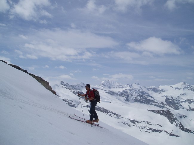 Montée par col des Pariotes puis la voie normale. Descente directe du sommet par la face ouest. La face elle-même fait 600 m avec une partie raide de 200m. Pour celle-ci un peu plus de 100 m à 45 (cot 4.3).