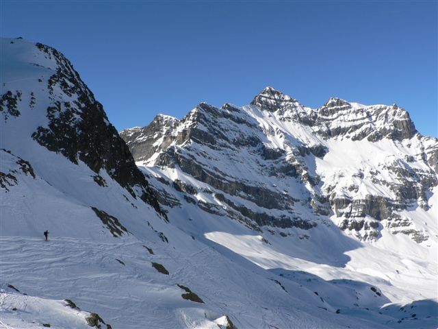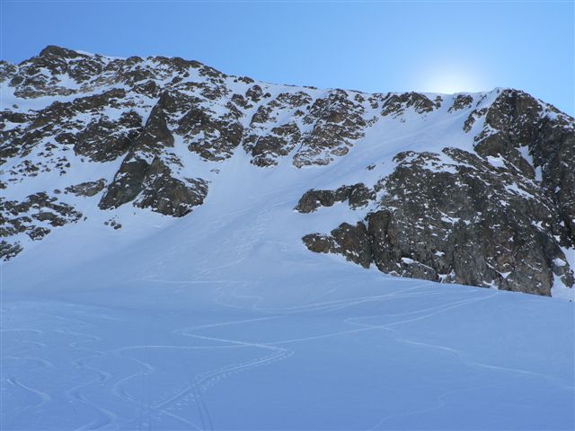 Le versant sud du col d'Emaney commence à purger en plaques jusqu'au sol.