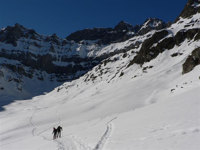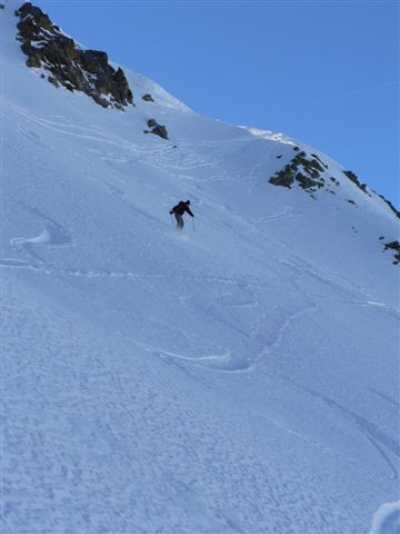 De la bonne poudre dans le versant nord du Luisin malheureusement trop court. Assez bonne neige transformée dans la descente du col d'Emaney. Le chemin de retour aux Marécottes est encore assez bien enneigé (4 courts déchaussages).