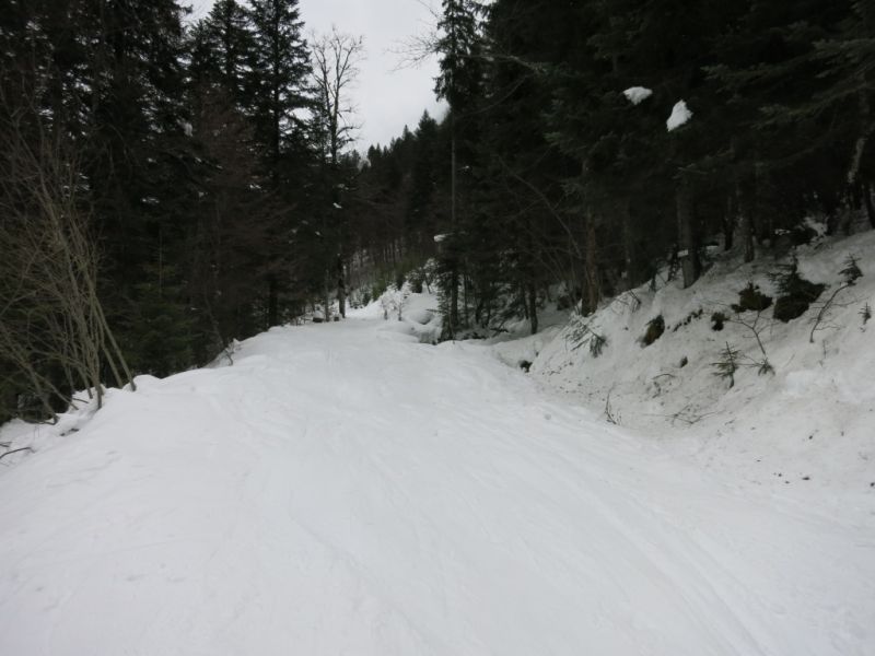 de la neige sur le sentier aucune touchette, le col de la saulce et les pentes NW au dessus du col sont en poudre 40 cm (cependant il y a de fortes accumulations de neige > 125cm , mon baton complet ), des que l'on passe en ouest (1600m environ) la neige est souflée dure croutee