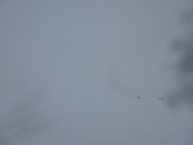 partis tard , vers 12h, le mauvais temps nous a refroidi et arrete au pied du couloir, (nous avons vu cependant 3 personnes remonte le couloir , ils avaient plus d'une heure d'avance sur nous juste avant que la meteo se gate ...)