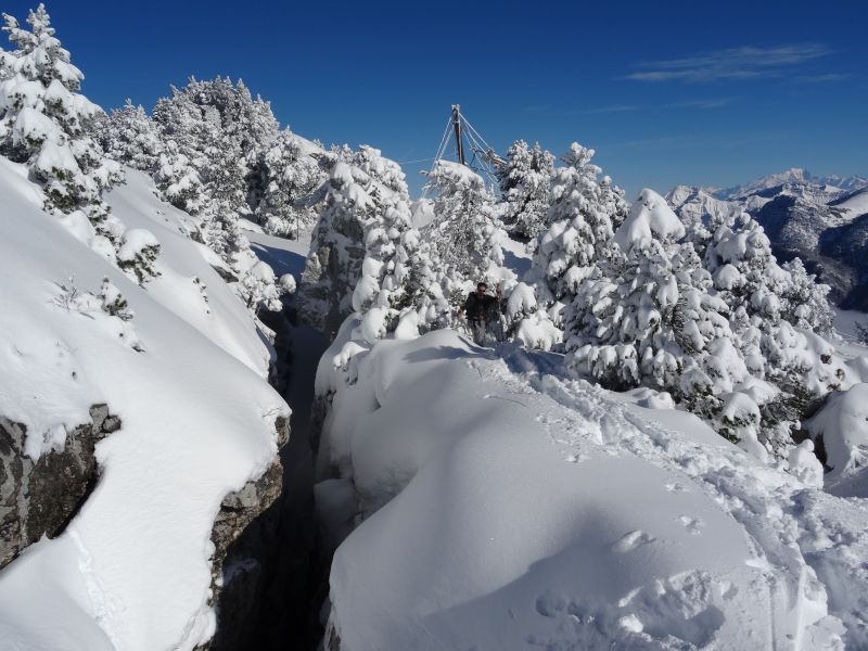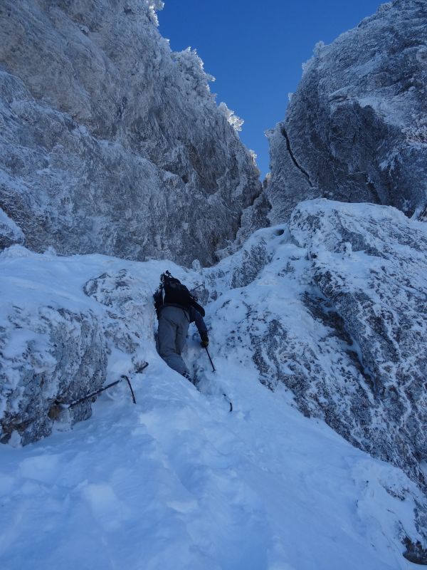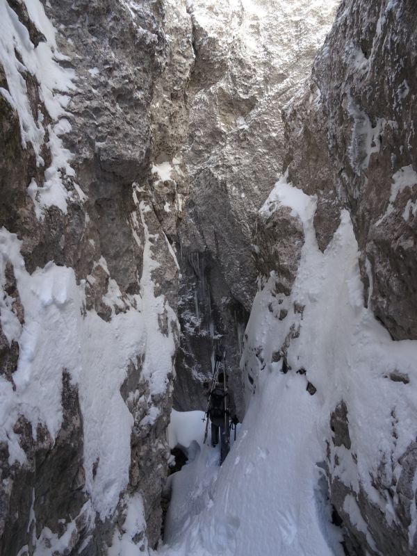 Une belle première sortie pour constater cet enneigement assez exceptionnel pour l'époque. Un zeste d'engagement et d'expo pour arriver à l'échelle et sortir via la faille (sans crampons), juste ce qu'il faut pour remettre les réflexes en éveil.