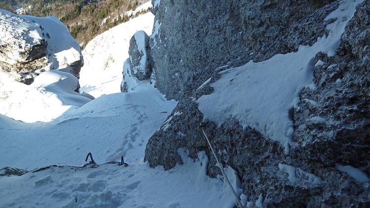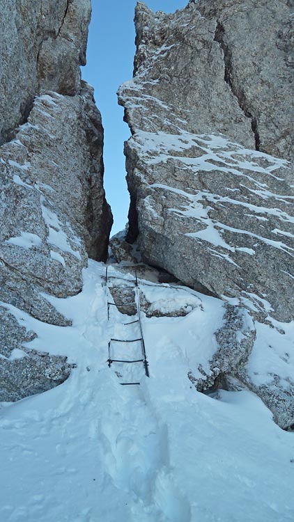 l'accès à l'échelle puis la faille passent bien sans crampons
