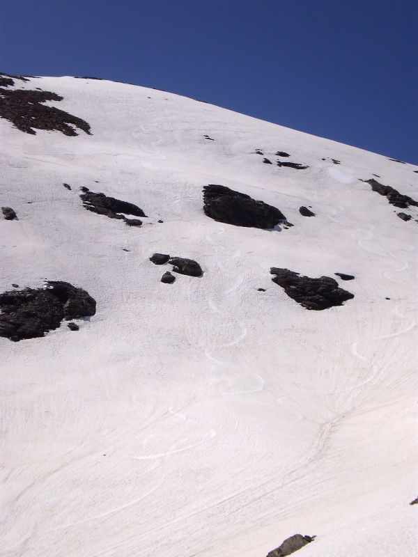 Il faut juste se méfier d'une pente neigeuse en train de se décrocher (quasiment une corniche) sur le flanc est du sommet de la pointe de la Met. Il vaut mieux se contenter de chausser 10-15 m sous le sommet en cailloux.