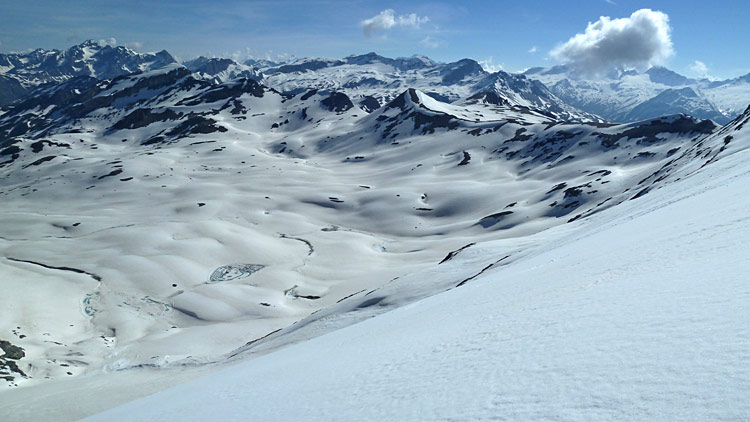Une belle matinée dans un secteur où il n'est pas encore le moment de parler de ratio ski/portage, très bon pour un début de juillet.