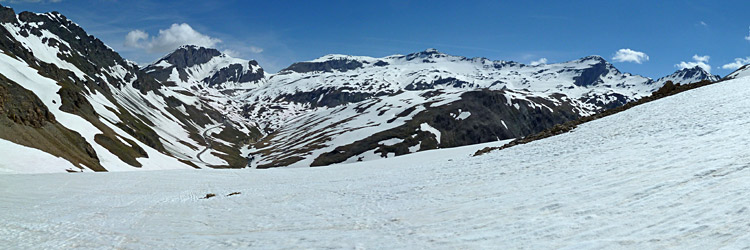 La couche tombée le weekend dernier n'a pas fait long feu : la chaleur s'est occupé d'elle rapidement (coulées + fonte), on retrouve quelques lambeaux de blancs aux abord des cols et dans les hautes faces.