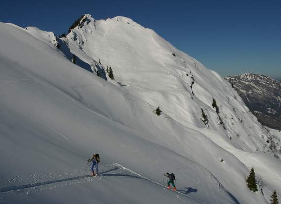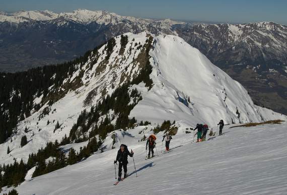 Pas de regel en foret, neige transformée dure le matin le long de l'arête, encore poudreux en nord jusqu'à 2000m, humidifiée mais skiable en nord vers 1600m