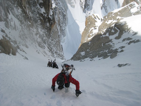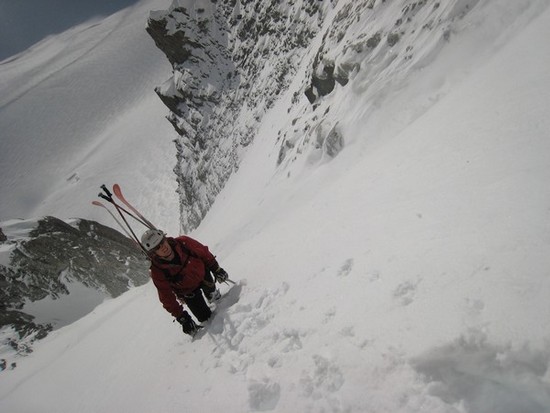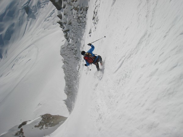 Pour le Jaeger , bonnes conditions de neige , on a cependant stoppé vers 4000m , bien que le couloir était skiable jusque vers 4050m, à cause de la croûte.