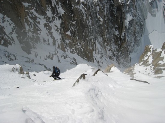 Le couloir Gervasutti à la Tour Ronde , est très court (250m) , mais raide. La sortie est délicate avec les skis (croute , etroiture) , mais ça passe!