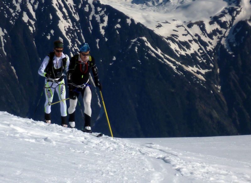 Neige pas facile à skier avec les skis de compet quand on arrive passablement cramé au sommet.