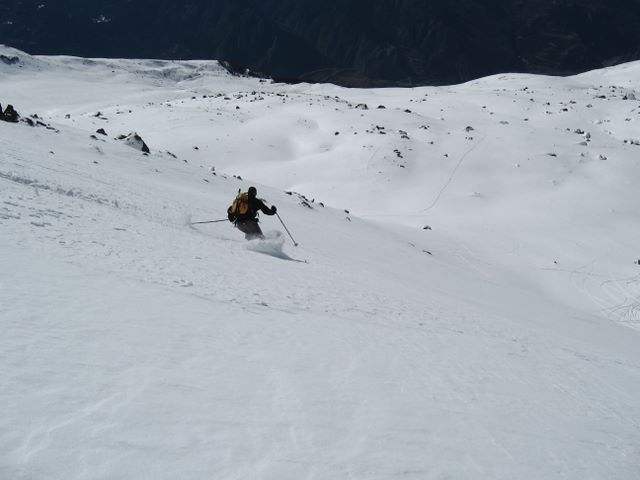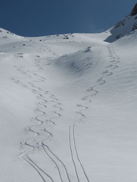 On l'avait loupé l'année dernière en décembre, cette fois ça a été la bonne. Y en a pas des mêtres, mais ca passe encore pas mal jusqu'à la bagnole. S'arreter à l'épingle de La Pérousaz, au lieu de faire comme nous et passer en force jusqu'à la suivante. Belle boucle par la combe nord, avec une entrée dans le couloir un peu ... rocheuse.