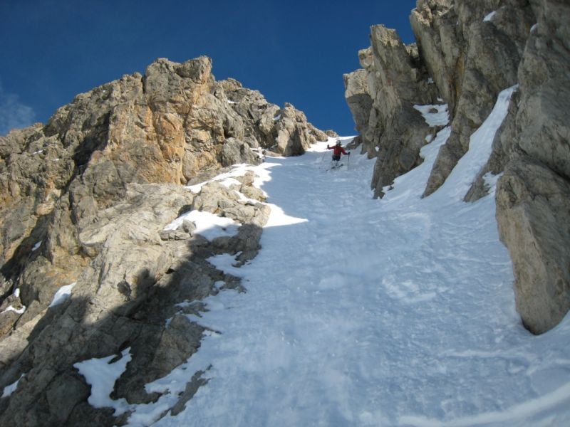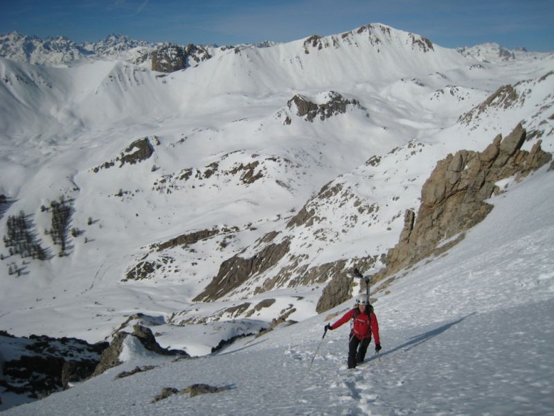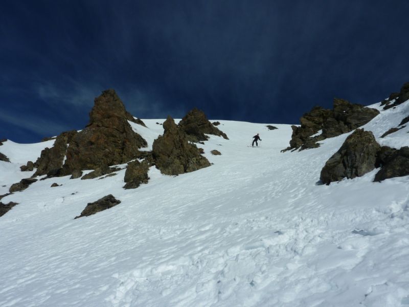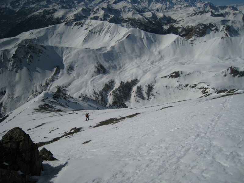 Du sommet au lieu de reprendre l'arête sud, plonger dans les grandes pentes orientées aussi sud et qui rejoignent la face ouest plus bas.