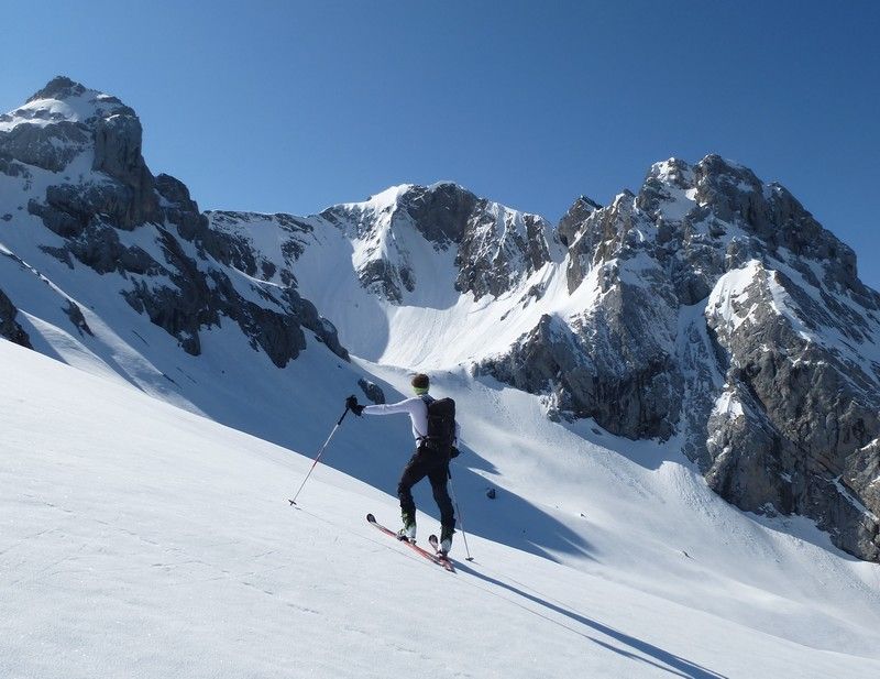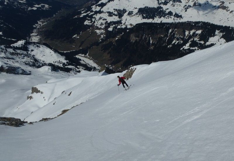 Très jolie face, soutenue sans être jamais très raide mais avec une exposition bien présente plus on monte. Panorama splendide et neige excellente aujourd'hui. Autres photos et impressions [ici->http://lesbertonches.over-blog.com/jolie-transfo-dans-les-aravis]