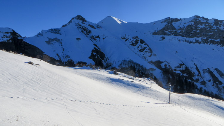 Après un début de semaine où la fonte a continué d'entamer un manteau déjà bien maigre, bon regel ce matin à la faveur du reafraichissement de la veille. Un léger saupoudrage vient recouvrir le tout