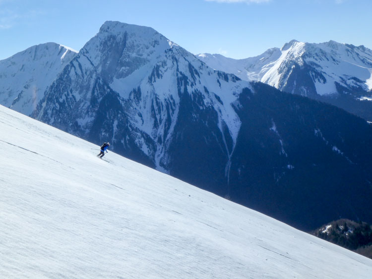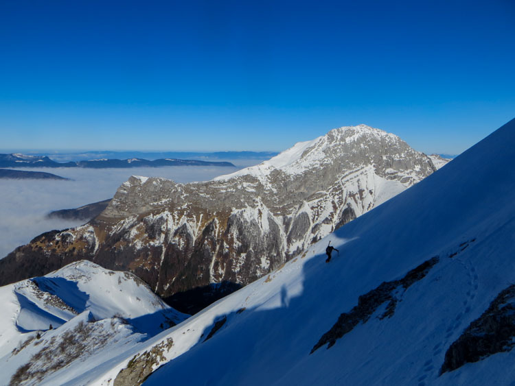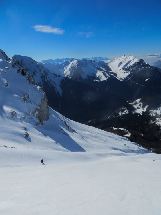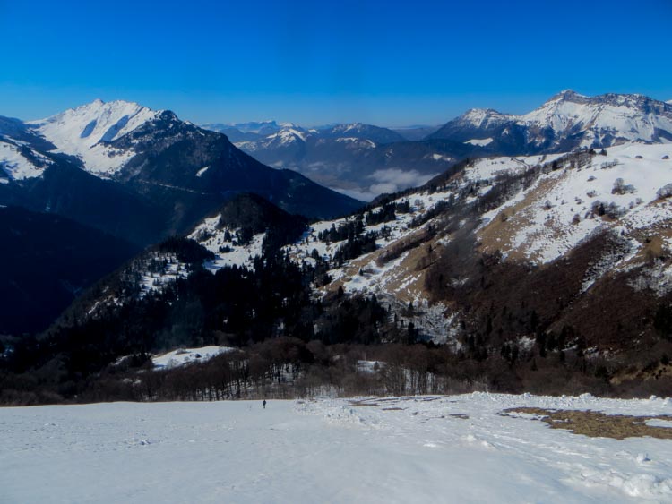 Une super matinée en compagnie de David, où on a choisi de partir de Précherel pour profiter de la (longue) route forestière, qui conserve mieux la neige. Descente un poil tôt au vu du regel du jour (11h30). Remontée avec ou sans neige sur la crête et retour qui secoue les chaussettes sur la route forestière. Sans nouvelles chutes, ça sent même la fin dans les Bauges.