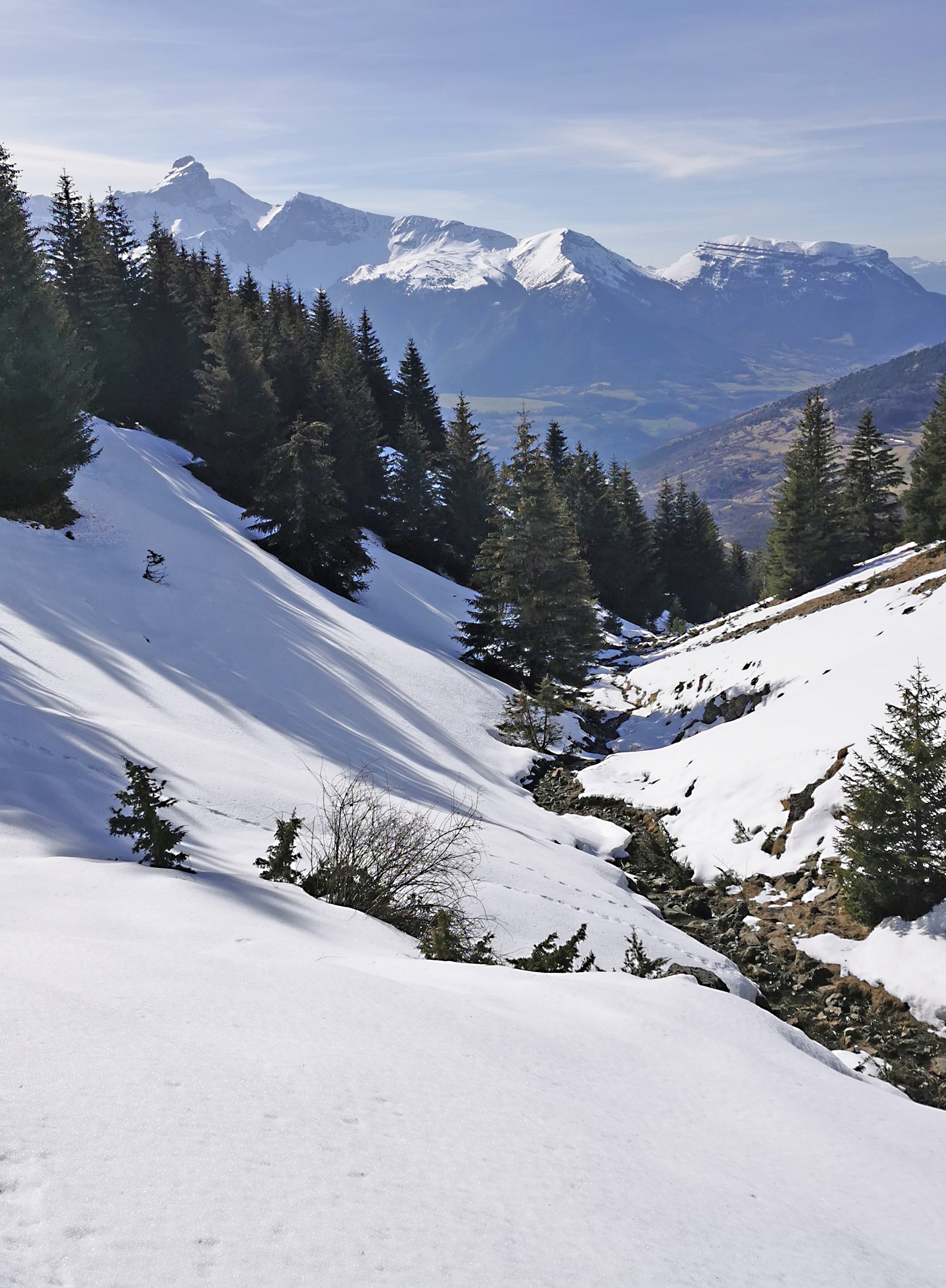 - toujours aussi fantastique cette combe des Adversins, axée plein sud mais qui reçoit toute la neige décapée alentour et qui offre plusieurs micro-orientations.