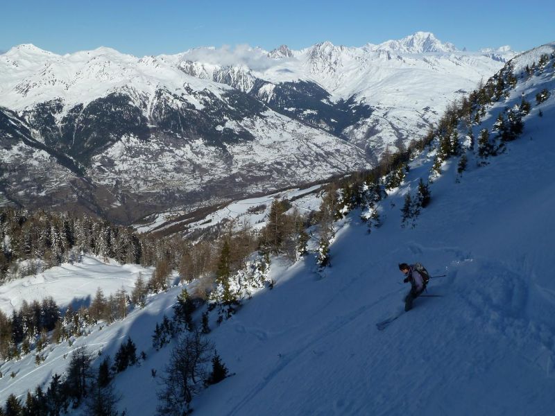 ça a soufflé fort au dessus de 2000, les pentes finales du mont Jovet sont partiellement décapées. En dessous de cette altitude, la poudre est légère et non travaillée, mais il en manque un peu en forêt.