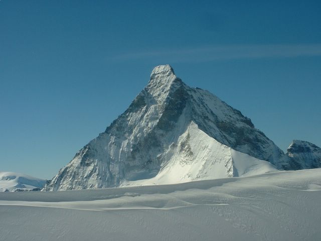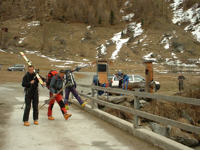 OUAAHH... Quels contrastes avec le temps incertain , la neige molle et les galères de la veille pour atteindre la cabane du Mountet: gros soucis avec nos peaux qui se décollent et qui necessite des arrets tous les 1/4 d'heure pour ressécher les skis, restrapper, "reélastoplasmer" etc ... et des sacs qui pèsent. Au matin de la course temps extraordinaire et panorama à couper le souffle avec le top du top au col, et sa majesté le CERVIN qui nous accueille. GRANDIOSE !!