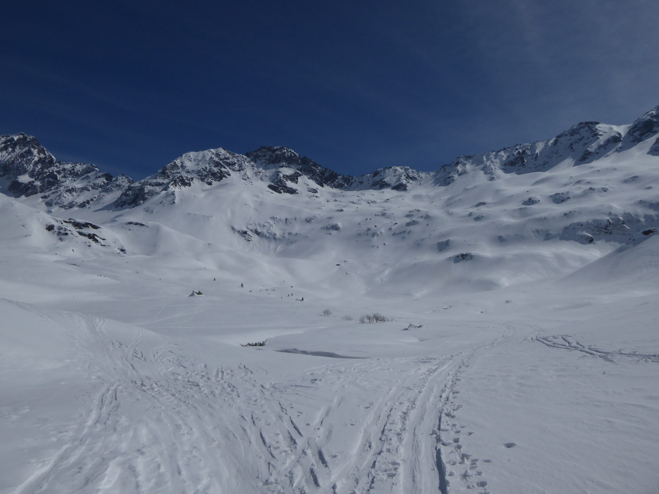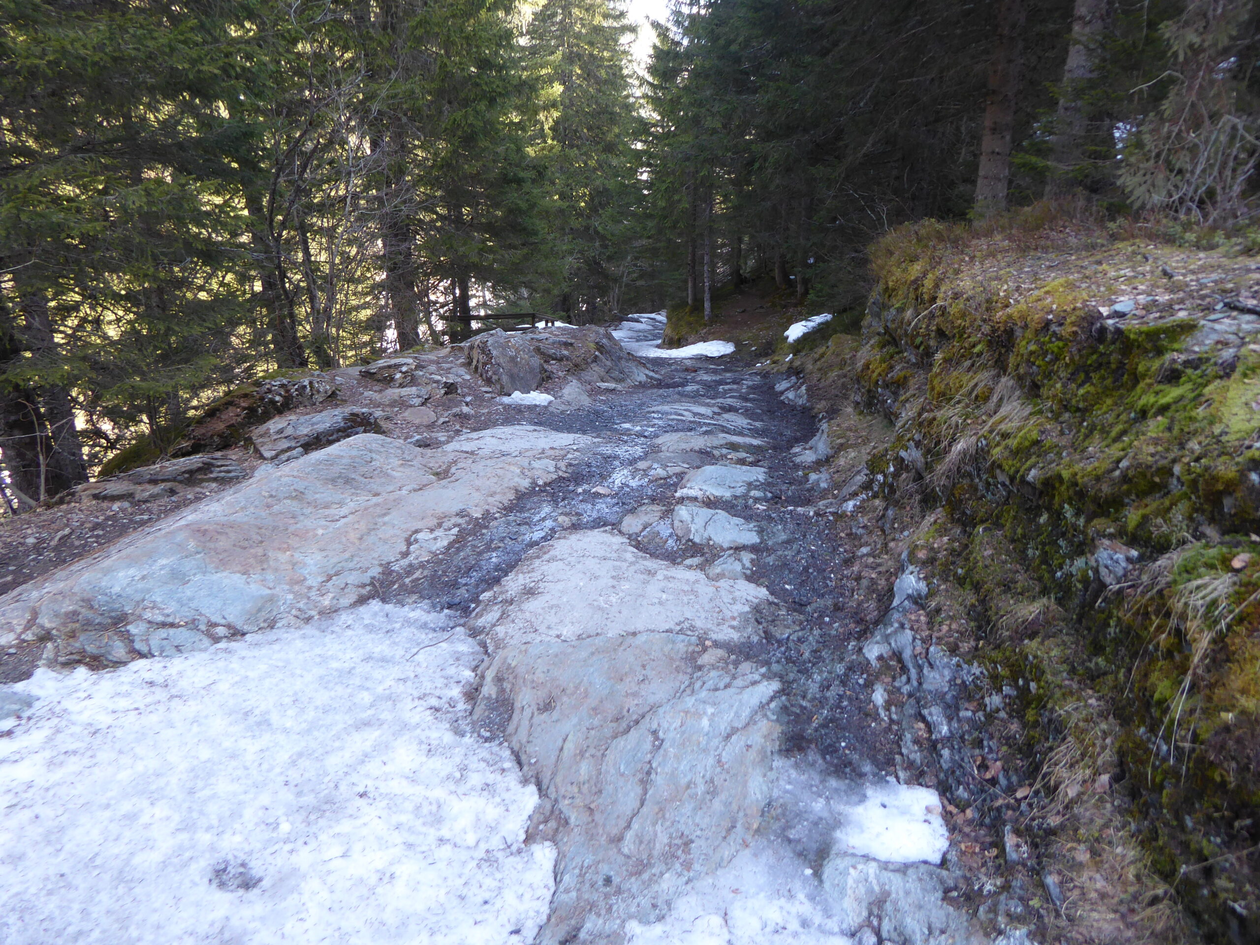 Bonnes conditions de ski avec une neige globalement transformée dans les orientations sud. Pas mal de glace sur la partie raide de la voie romaine. Ca passe bien à ski à la montée avec juste deux courts déchaussages. A la descente j'ai emprunté le sentier tracé parallèlement à la voie romaine pour éviter la partie basse quand elle est gelée.