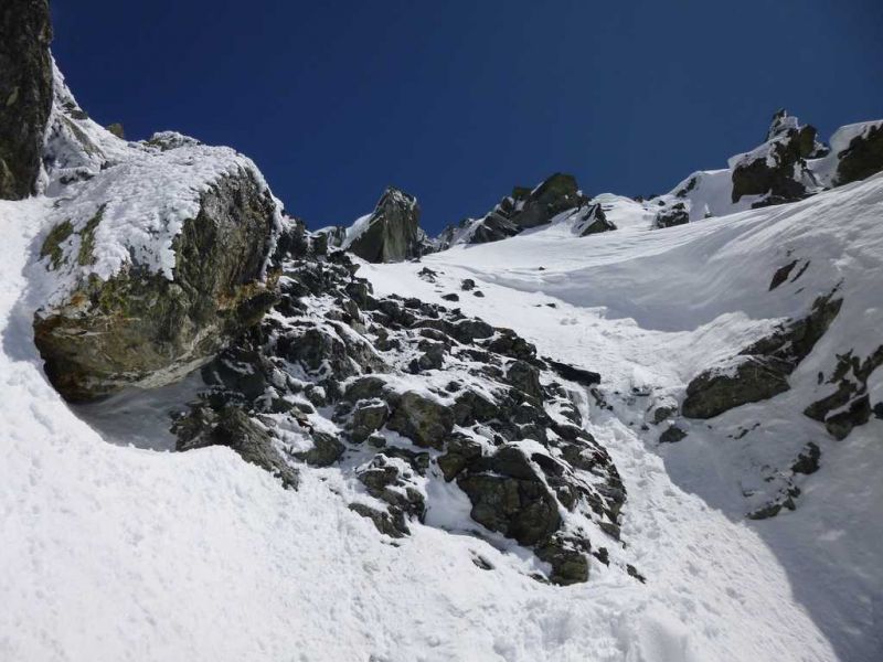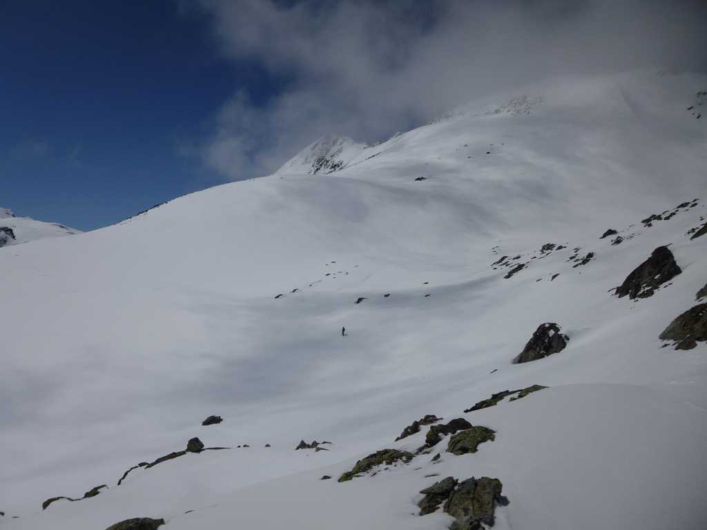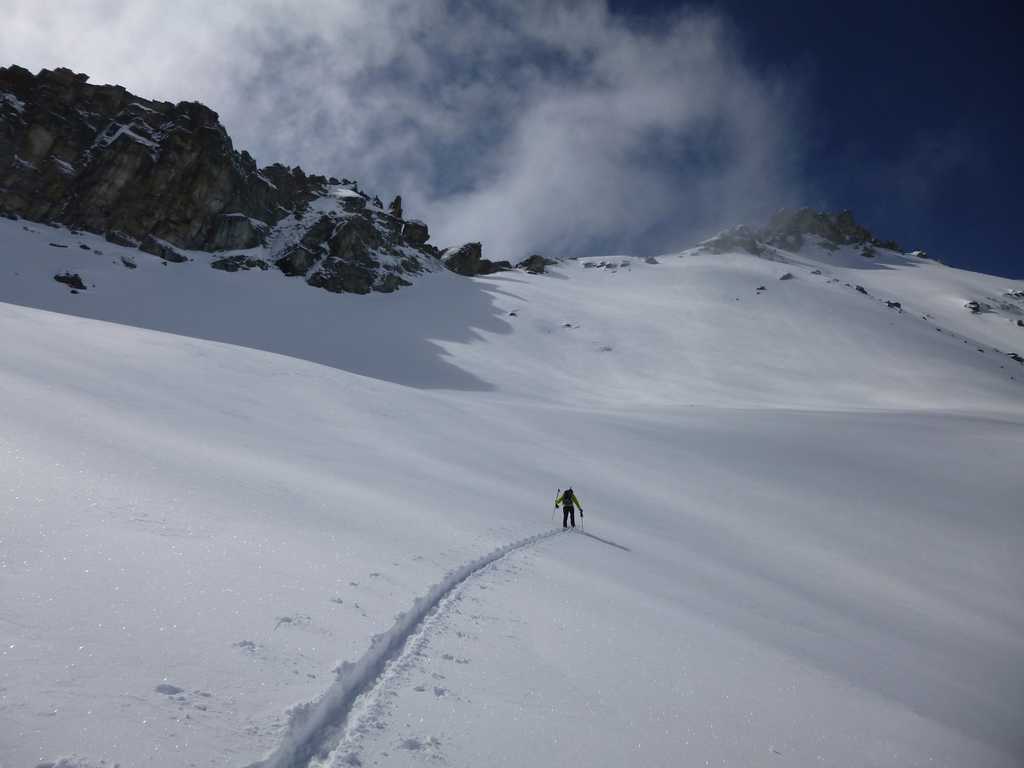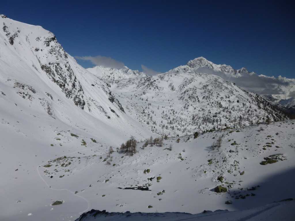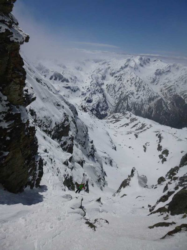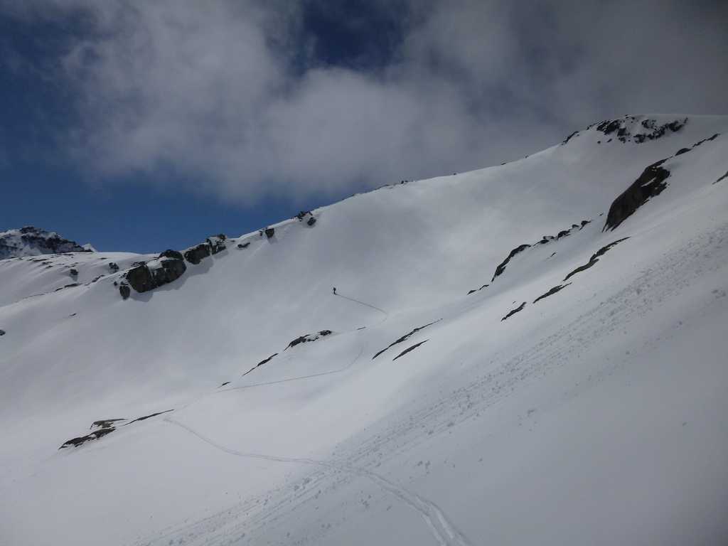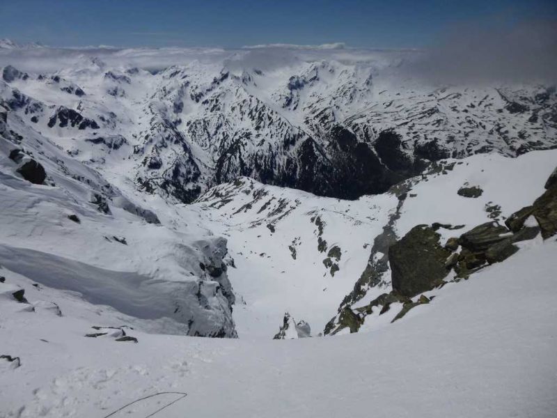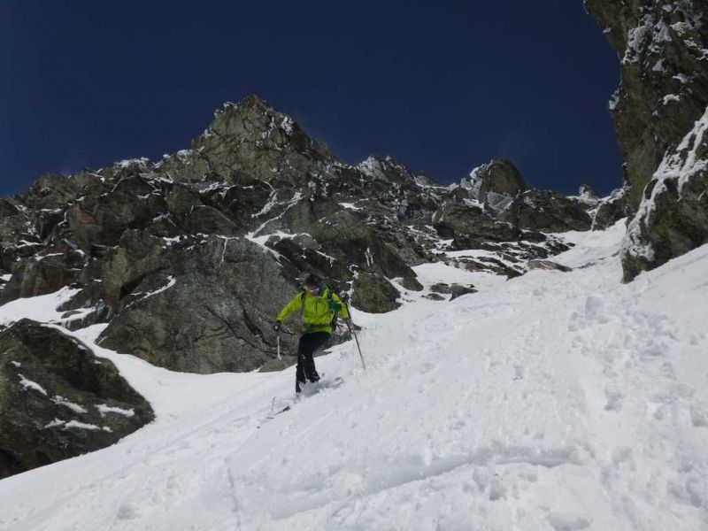 J'avais repéré ce couloir il y a deux ans depuis le mont Valaisan. Pour ce qui est de l'accès au mont Lusse depuis le col San Carlo, je le dois à des contributeurs de [{{Gulliver}}->http://www.gulliver.it/itinerario-gite/58244/#!]. Merci à eux. La combinaison des deux donne une très belle course (4.1/E2, couloir ouest : 50m à 45° puis 200m à 40°).