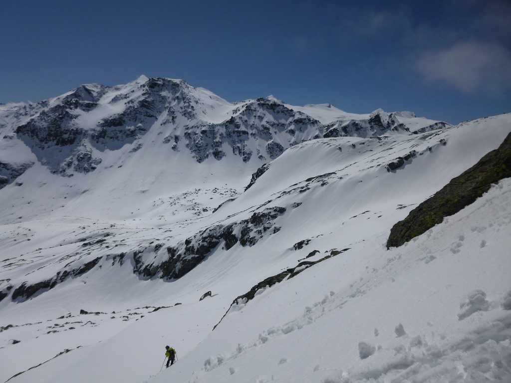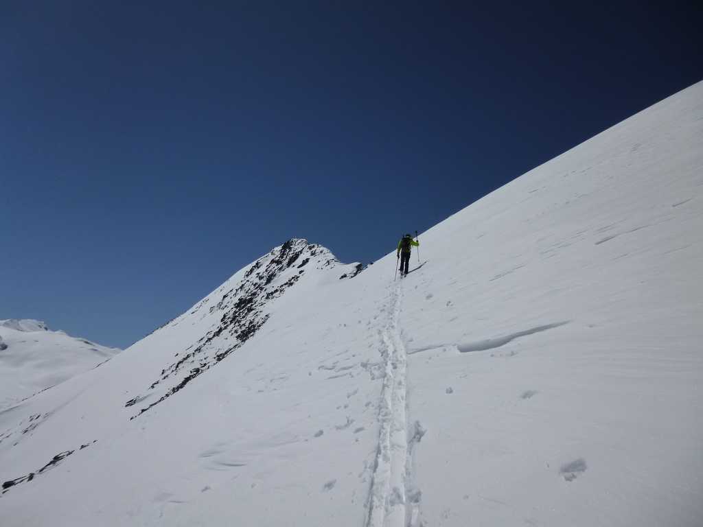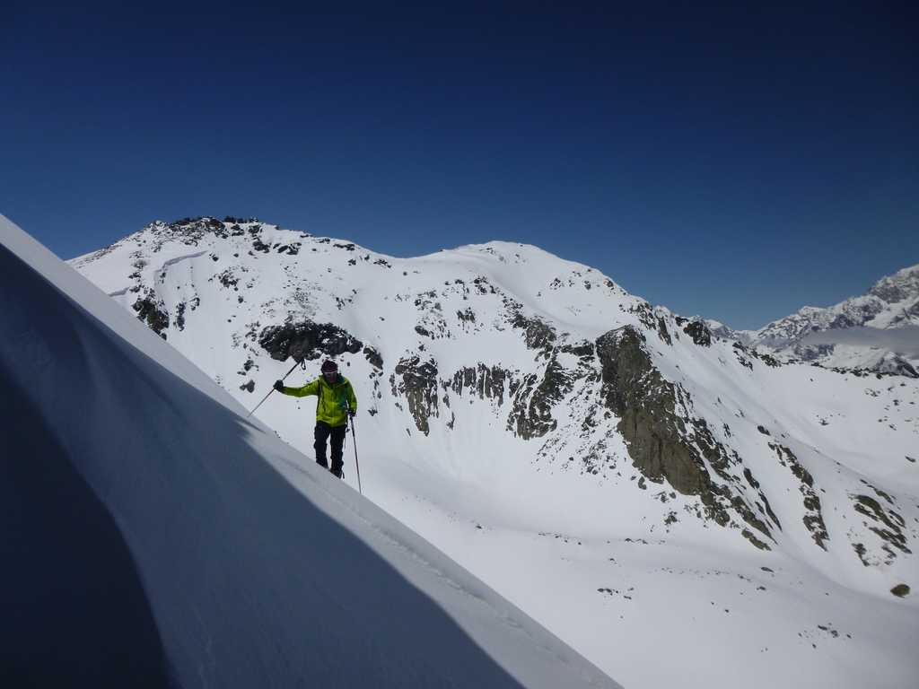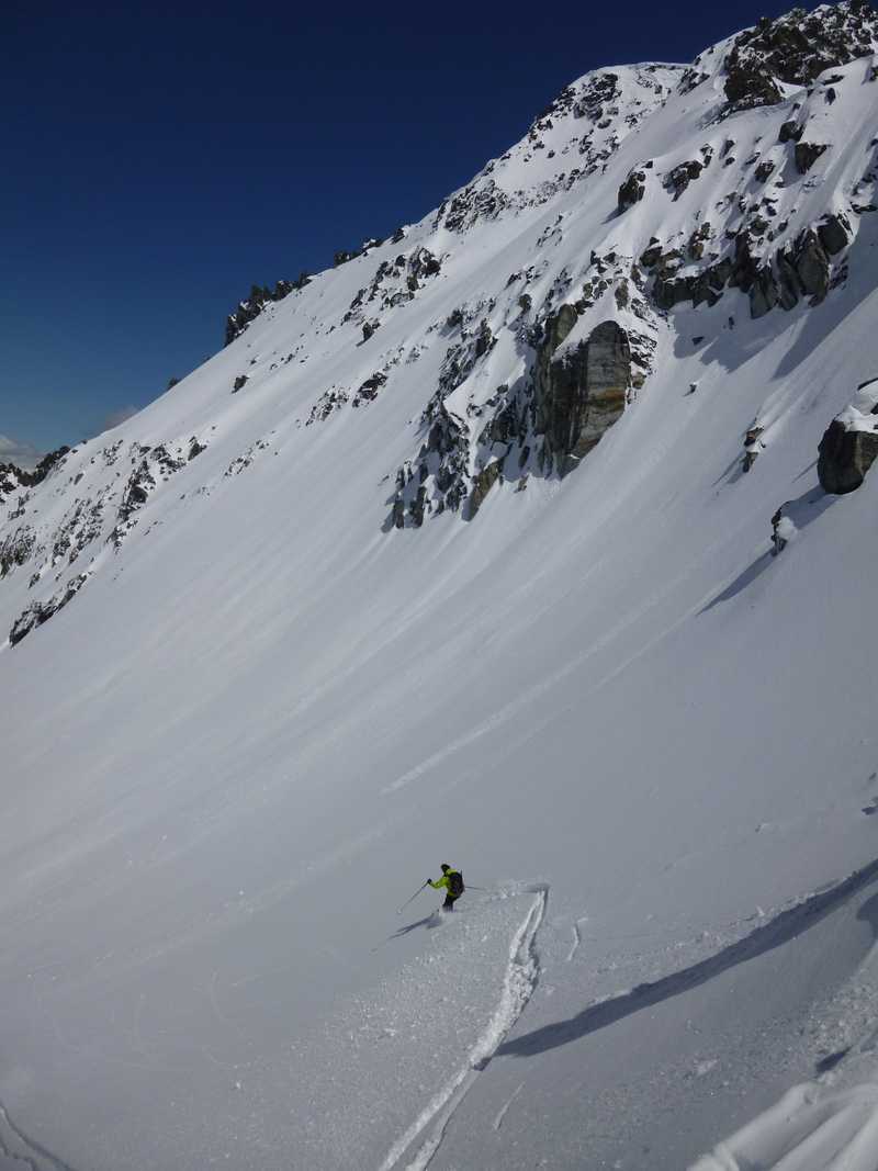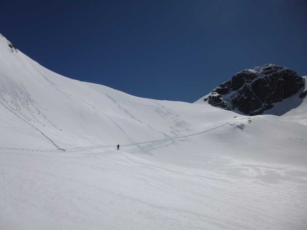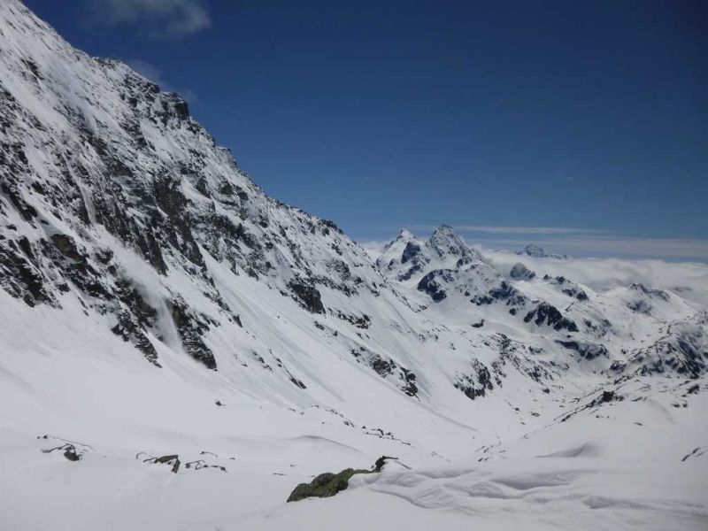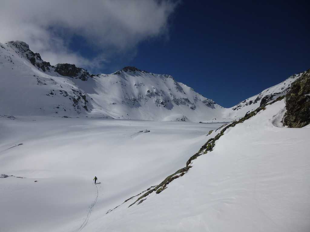 J'avais repéré ce couloir il y a deux ans depuis le mont Valaisan. Pour ce qui est de l'accès au mont Lusse depuis le col San Carlo, je le dois à des contributeurs de [{{Gulliver}}->http://www.gulliver.it/itinerario-gite/58244/#!]. Merci à eux. La combinaison des deux donne une très belle course (4.1/E2, couloir ouest : 50m à 45° puis 200m à 40°).
