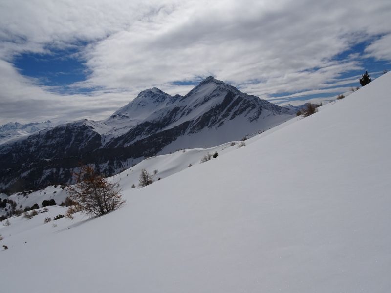 On arrive en voiture au col de La Coche ou l'on chausse.La nouvelle neige évolue vite. Elle a disparu au dessous de 1800 ; de 1800 à 2100 neige à peu prés transfo. Au dessus poudre lourde plus ou moins croûtée avec une belle épaisseur (50cm environ). Pente raide sous la barre est du Mt Orel suspecte ? Au dessus un peu de tout avec le vent mais bien skiable. On ne touche pas même dans le bas, déneigé avant la dernière chute, en faisant attention.