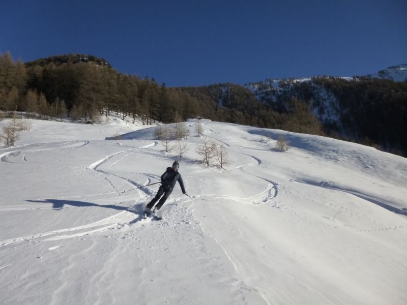 Neige humide au départ devenant plus sèche à mesure que l'on monte. Neige plutôt agréable à skier.