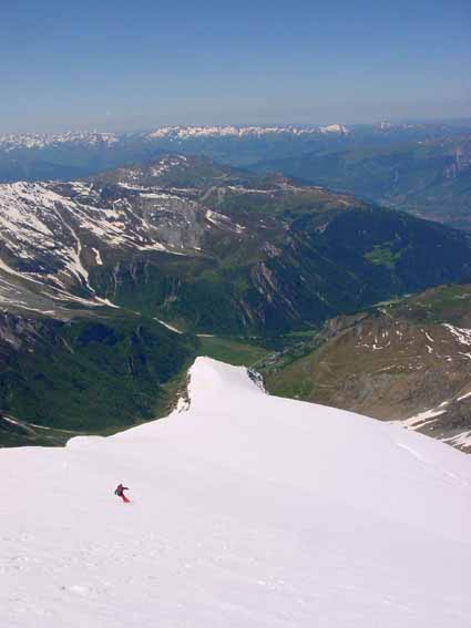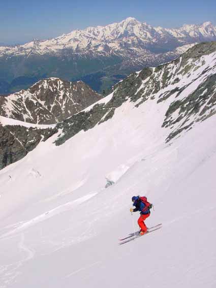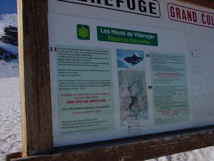 Seulement 150 m de portage en descente, très bonne tenue de la neige toute la course grâce au bon regel. Enneigement un peu moins fourni que l'an dernier fin juin mais en raison d'un bouchon de neige on n'atteint pas le TS du grand col., ce qui était le cas en 2001. A noter, un bon moyen de faire travailler les "pros" (guides, moniteurs, agents ONF) : un décret ministériel interdisant le ski hors-piste "non accompagné" : amende de 138 euros, voir photo