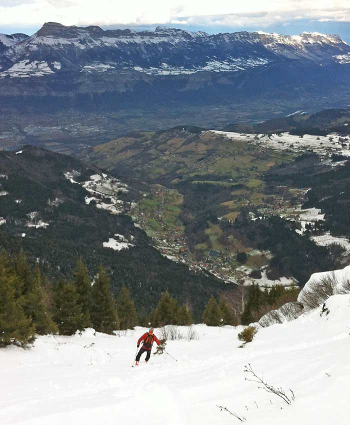 Ski archi nul à toutes altitudes. C'était prévu en sentant la T° le matin : la neige dense de la veille s'était déjà humidifiée, alors que la veille on espérait encore une matinée potable. Mais le rdv était pris. Au moins on aura vu la possible future sous-couche.