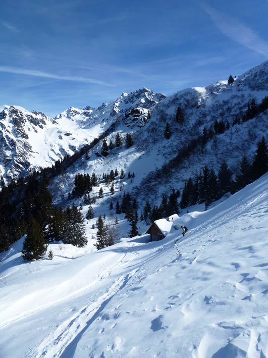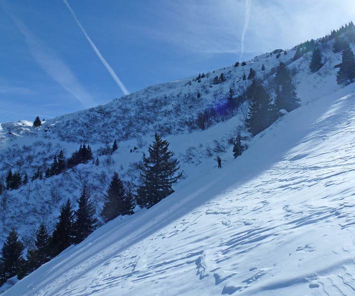 la couche en forêt s'est bien améliorée malgré des vernes non couchées par les chutes de neige froide précédentes. En forêt nord pas de neige dense comme vu avant-hier dans le Vercors. Début de croutage en sud à ouest.