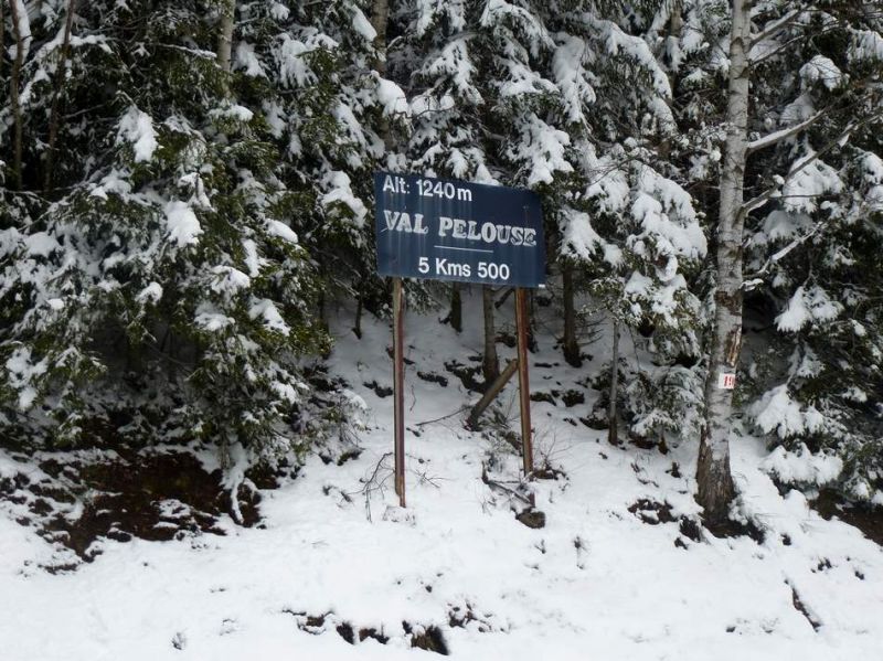 Départ sur la route à l'épingle 880. Montée un peu fastidieuse jusqu'à l'épingle avec le panneau Val Pelouse 5,5km (altitude 1250m). 200 m après celle-ci on peut prendre une piste à droite plus direct et plus raide qui amène pile sous le départ des "pistes" à 1500 m environ.