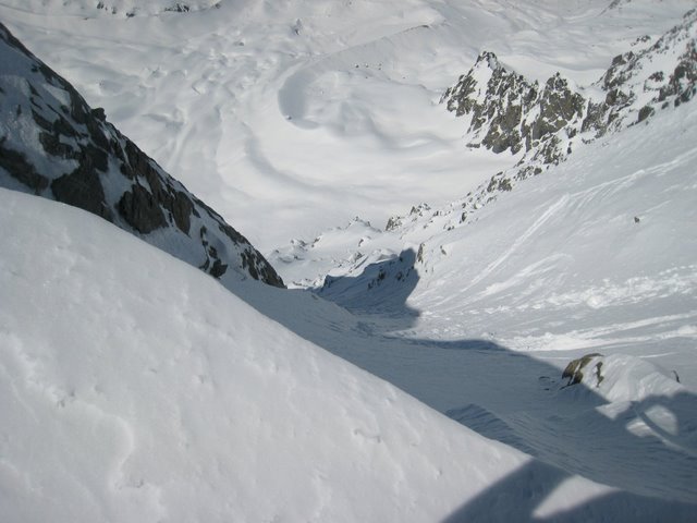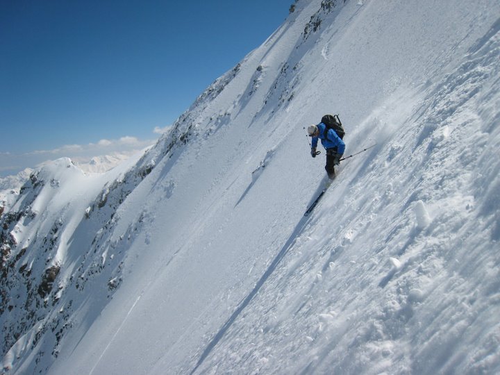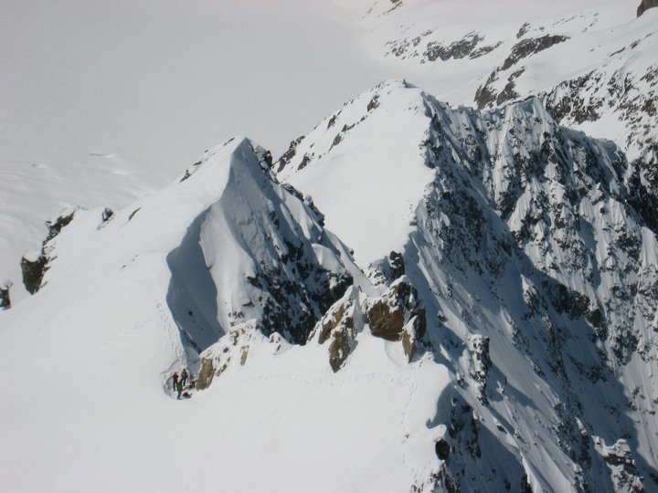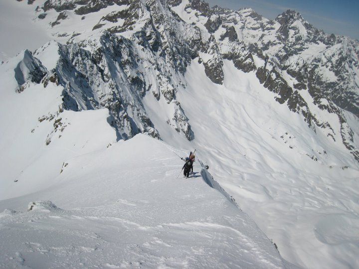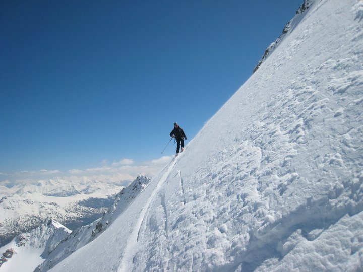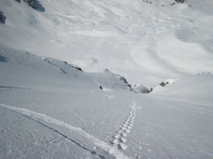 Des conditions exceptionnels en Nord dans ce secteur , rarement skié de la pente dans d'aussi bonnes conditions de neige... Neige qui permet toute les fantaisies dans le raide... I compris ce la coller en glissant sur les seuls 20m2 de glace de la calotte (dédicace à José).