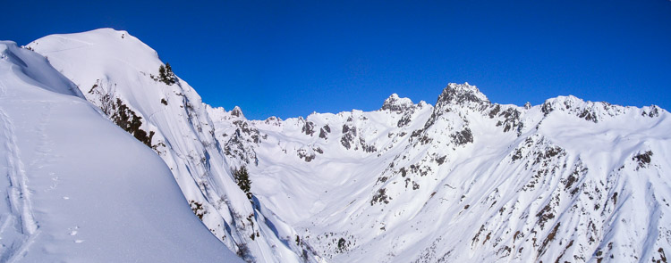 On devait faire une collective, mais d'autres ont préférés les coins plus tracés ou en moins bonne neige :) Pour nous, ce sera un circuit très sauvage, pas une trace dans nos descentes, de la neige au top ! Croisé juste 50 chamois dans la montée au Combache. Sympa de retrouver les potes et de profiter d'un cadre et une neige top comme ça !