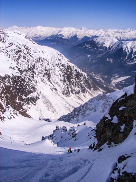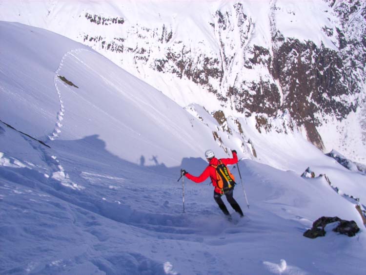 Valmaure > Mont Rond d'en haut > Montagne de Sambuis Sud jusqu'au point 2083m > Couloir Nord rive droite > Remontée sud en face jusqu'à la Pointe de Combache > descente Nord goulet de droite > combe de Pellegrin, Roc de Montet > combe de l'Arbé > les Roches, il faut juste envoyer l'esclave chercher la voiture... D+ : 2800m