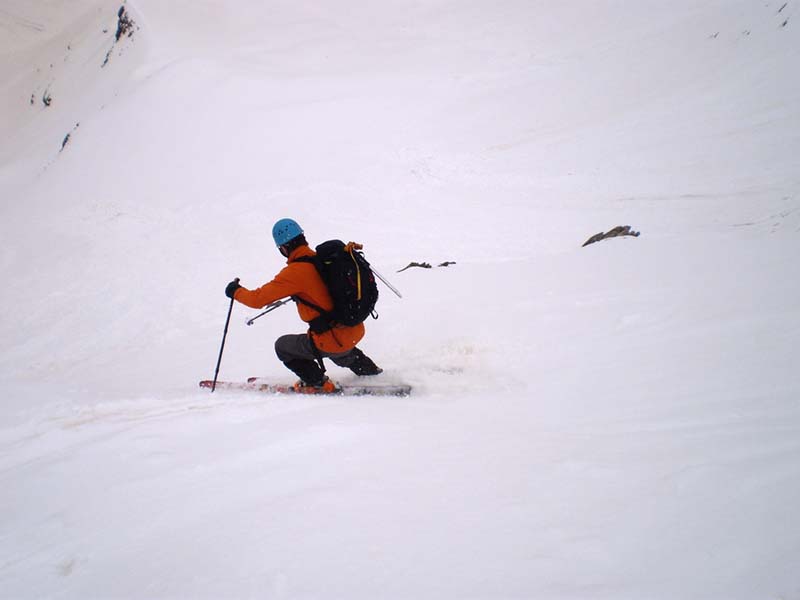 Très jolie sortie, avec de la neige récente humidifiée dans la face finale. En haut, nous sommes passés assez à gauche, en suivant les traces de prédécesseurs, et nous avons dû faire attention à ne pas visiter le fond de belles rotures près des rochers. Tout en haut, la neige meuble est profonde et plutôt pourrie. Nous avons fait le sommet en aller-retour et chaussé dix mètres en contrebas. Les dix premiers virages sont bien raides... Neige somptueuse après avoir descendu la face, 2 cm de neige de la nuit sur fond dur sablé. Des marmottes en tous sens. Vu un skieur près du refuge qui semblait venir du col des Chevrettes.