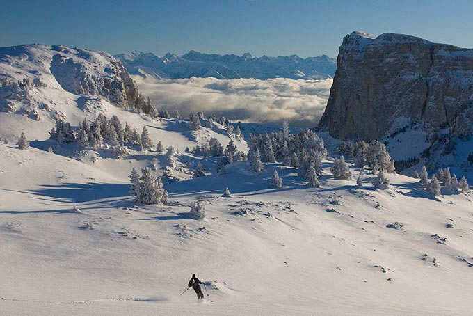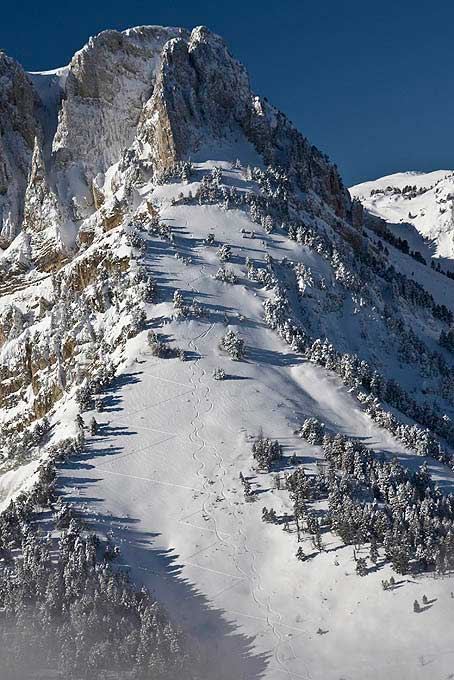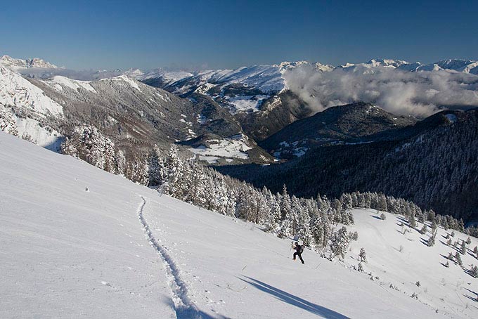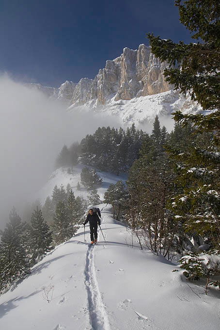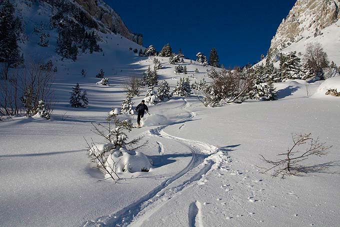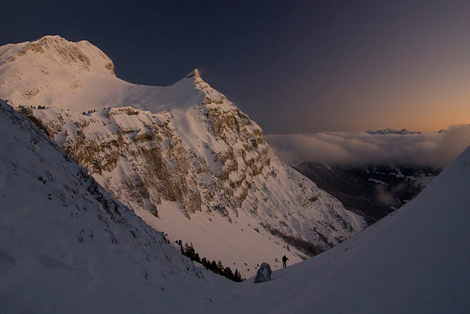 Encore du Vercors mais pour moi deux descente nouvelles sur les trois du jour. Et quand on voit les dégâts du vent aux étages supérieurs (pour la sécurité ET la qualité du ski), on se dit qu'on a bien fait de faire de la moyenne montagne, si belle en cette saison. 1600 m de très bon ski et des images plein la tête, après avoir tout tracé en ces lieux où nous n'avons croisé absolument personne. Faut dire qu'en montant pendant 1h30 de nuit...