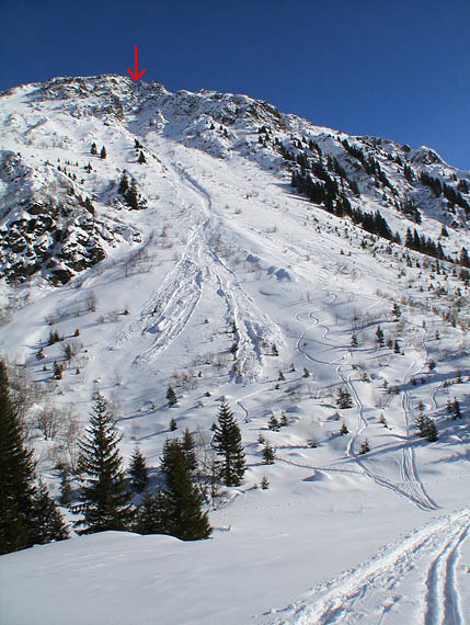Le couloir en question a purgé au cours de la chute dans sa moitié inférieure.