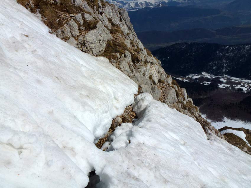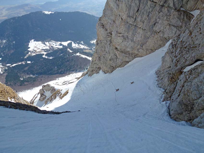 La transformation n'est pas complète ne versant froid au-dessus de 1800 et même de 1500 où on trouve de la poudre sous une croute très fine en rive gauche de la combe charbonnière. Idem dans le couloir des 2 sœurs où ce n'est que quasi-transfo à certains endroits. Quelques plaques de verglas. Quelques reptations sur dalles.