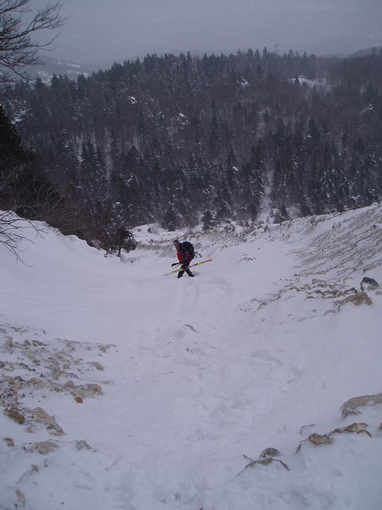 Montée par K10.1. A la descente, vers 1550, on tire à droite (clairière 50m plus bas) puis à gauche vers 1350 pour rejoindre le couloir des 3 Pucelles. Descente de celui-ci jusqu?au GR et légère remontée pour retrouver le virage. D+ : 750, D- : 950.