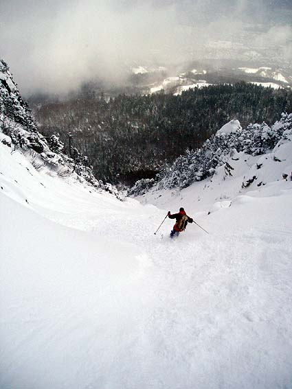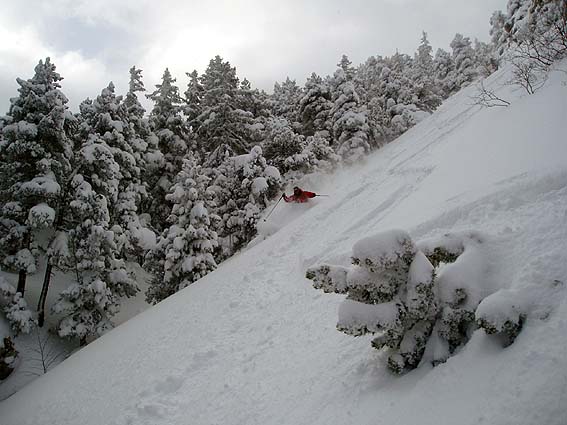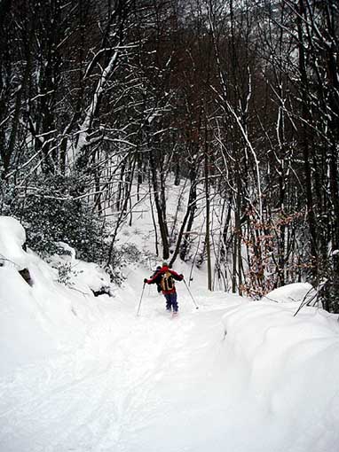1700m de ski où l'on finit à pied à la maison des Lesbros. Mais faut pas s'emballer, la descente est hétérogène. Cela donne : Sommet => 1550 : impec par la piste. 1550 => 1350 : gavage dans la clairière au-dessus du couloir des Pucelles. Couloir : très bien en haut, cailloux en bas (skis abîmés, déchaussage quasi obligé sur 50m). Suit une portion sanglier (blocs, arbustes). Bon chemin ensuite jusqu'à Pariset si on trouve les bons passages. Pousse-pousse et barbelés dans les champs en-dessous. Pour la suite, jusqu'à la ferme Froussard, ça skie bien en suivant le chemin. En-dessous de 400m, déchausser si on n'a pas de skis-cailloux. Dans tous les cas, fin à pied par le Coup-de-Sabre. Descente ludique sur la ville qu'il fallait bien faire !