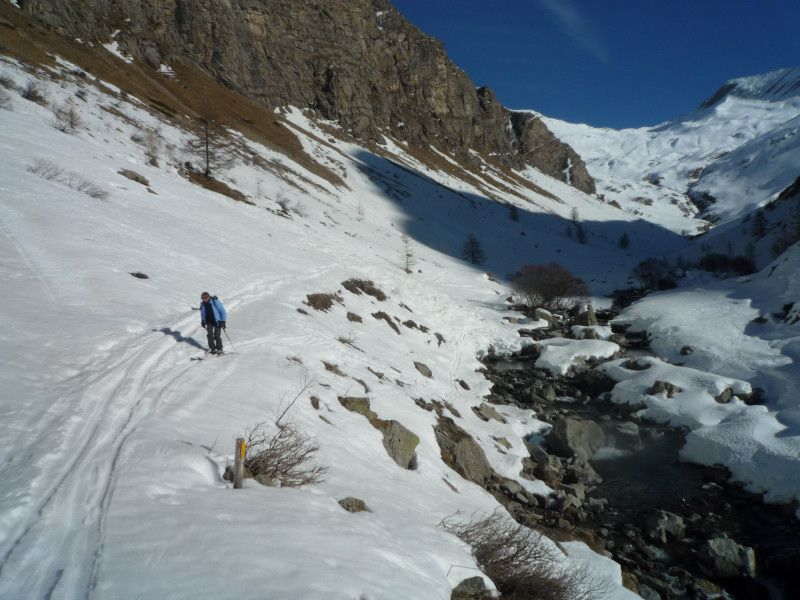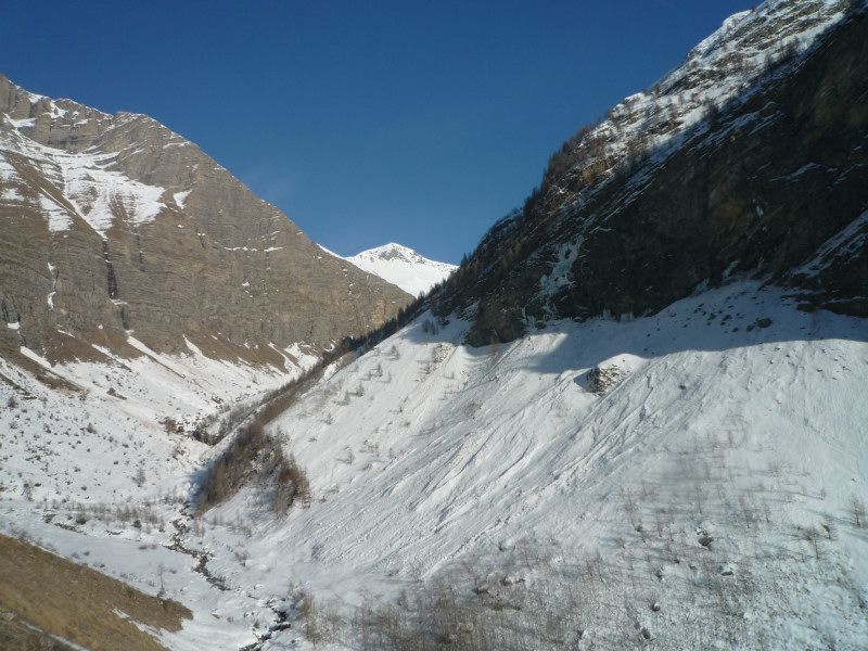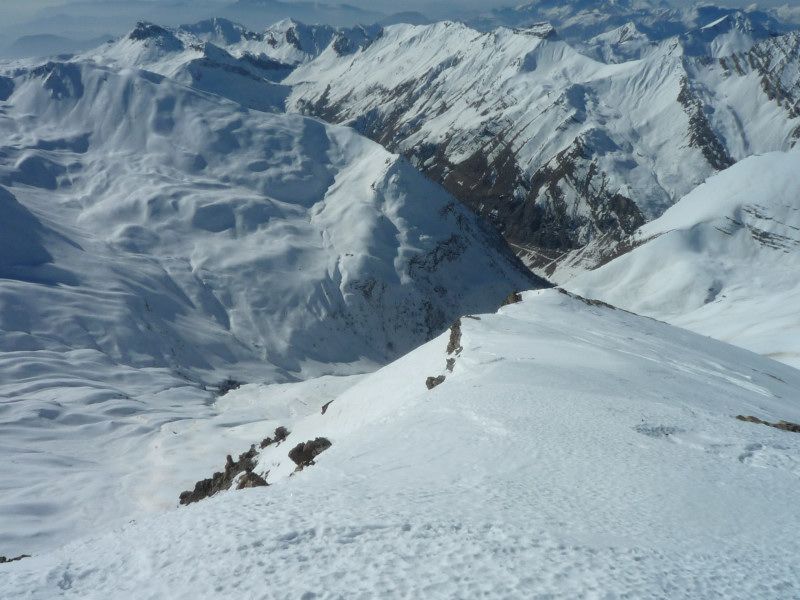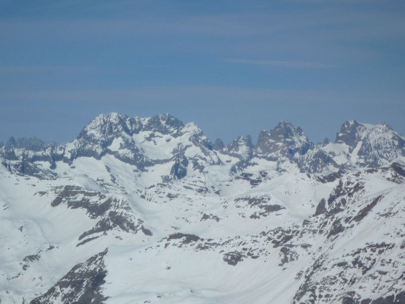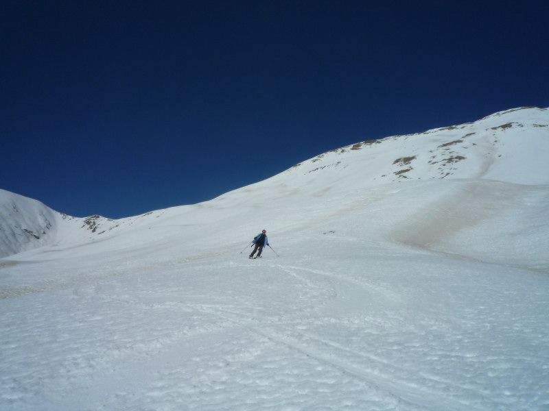 Faible enneigement dans le coin,le torrent de Chargès n'étant pas du tout comblé,il a fallu porter à la montée(1h15) comme à la descente(1h00)bonne bavante sous la chaleur.Du col de la Montagne Haute au sommet le contraste et saisissant:retour du froid et conditions de ski apocalyptiques,c'est carrément inskiable sur 200m(le bout des chaussures n'arrive pas à pénétrer la croute,heureusement la pente n'est pas sévère.J'ai pu m'échapper à la descente en coupant assez haut en face Sud .