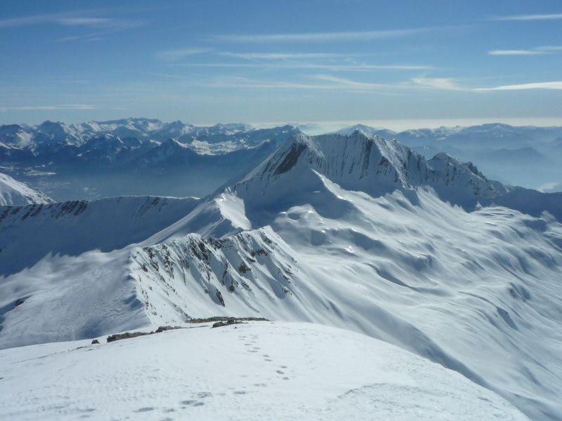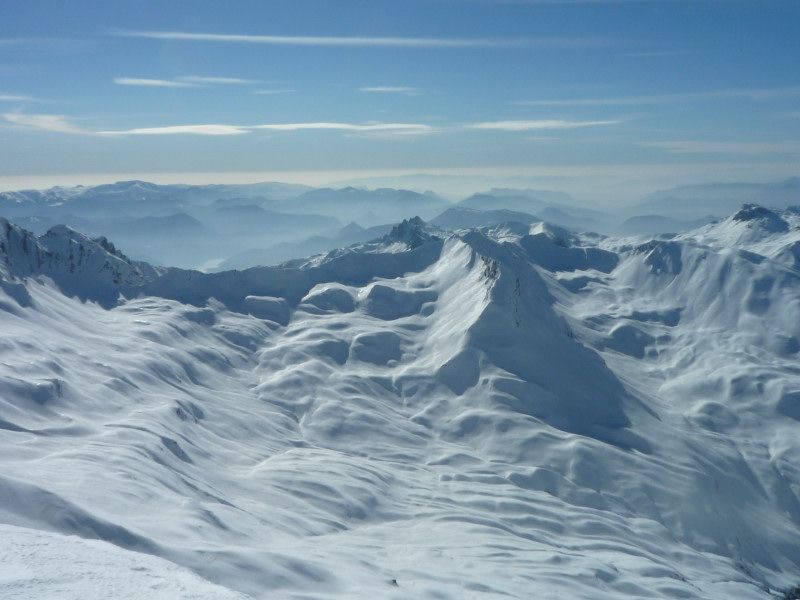 Ras jusqu'au col de la Montagne Haute,mais depuis le Col jusqu'au sommet alternance de neige dure et de plaques vitrifiées .La prochaine couche aura du mal à coller.