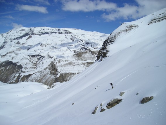 Les faces du coin sont relativement bien enneigées au dessus de 2200 (on s'attendait à pire). En versant ensoleillés par contre et même à haute altitude, il n'y a que la poudre tombée ces jours ci mais elle fond vite. En N >2600 il faut faire attention aux plaques récentes formées lors des dernières chutes: on a 3 couches de densités différentes depuis la vieille neige (faces planes), mais toutes sont bien denses et forment des plaques friables=> descente du goulet de la face N du Mourre Froid par sa rive droite et non dans l'axe pour éviter de surcharger le bombé. Dès que l'on redescend on tombe dans la croutée et la tension baisse même si le ski est moins bon.