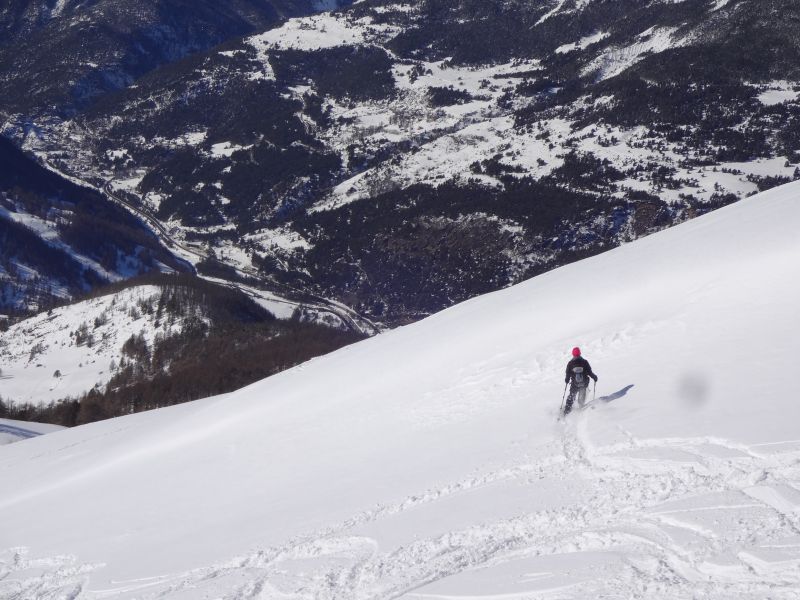 Conditions excellentes. Bonne trace d'un groupe encadré. Retour Villevieille Molines en stop.
