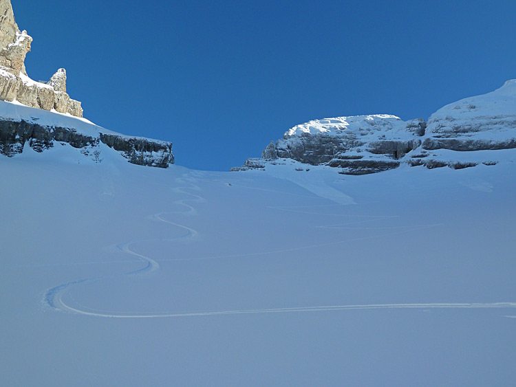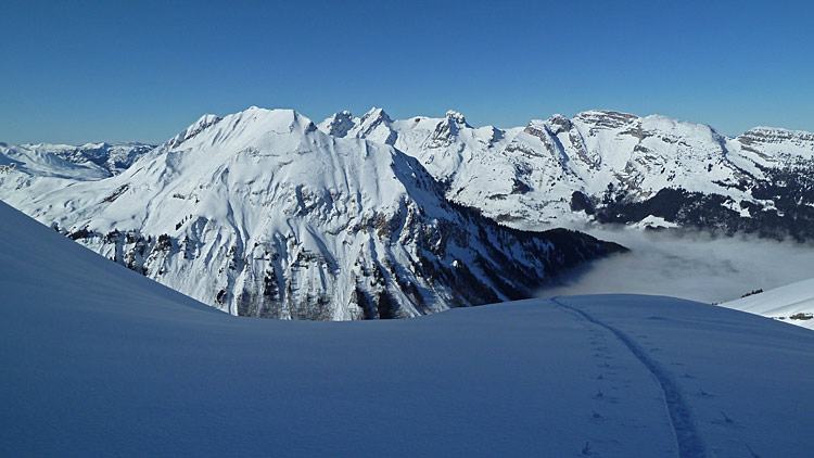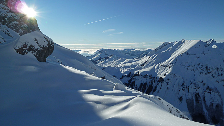 De la poudre à gogo au dessus de 1800, même si le fond dur n'est pas bien loin sous les crêtes.