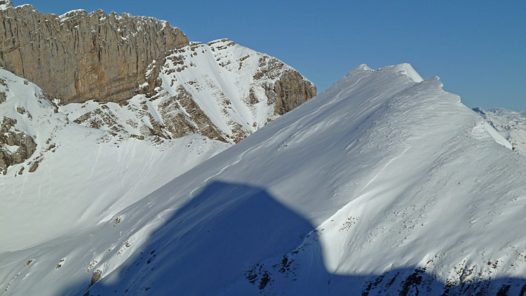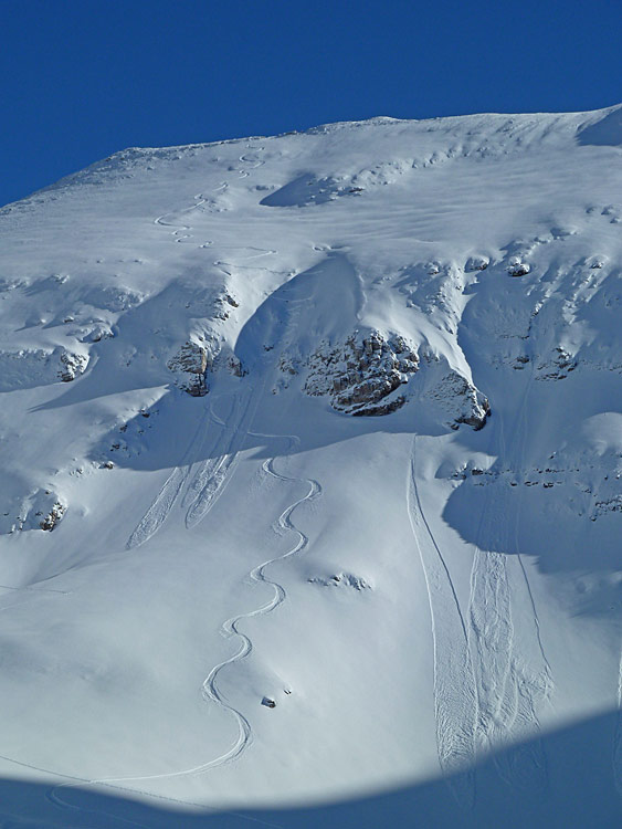 Les hauts des faces sont en neige dure (vent).